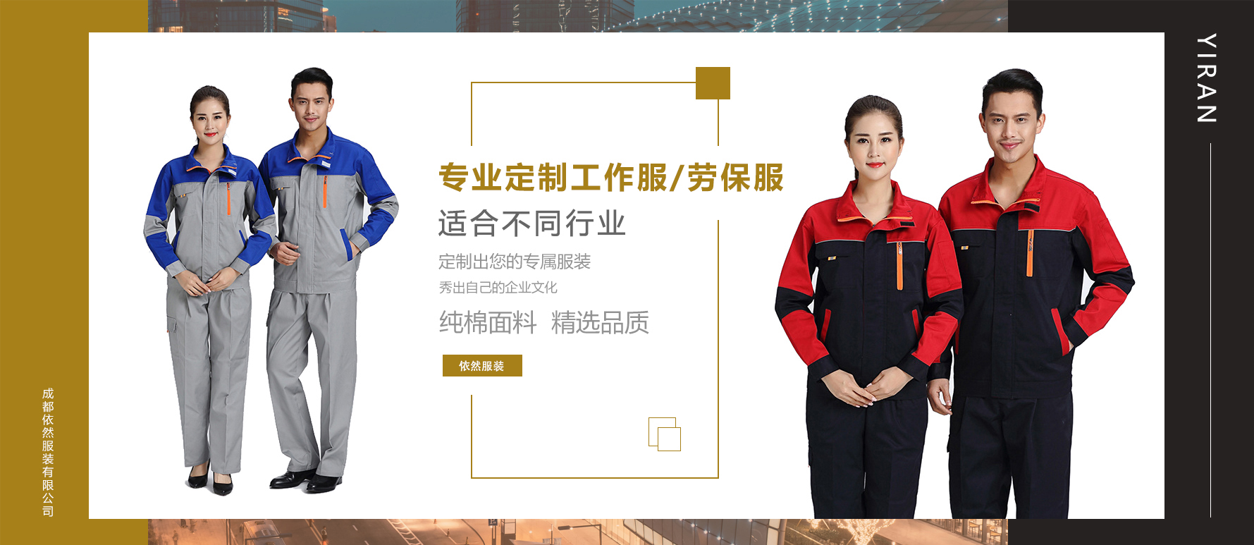 成都依然服裝有限公司座落于偉大的天府之國(guó)成都,公司是一家專(zhuān)業(yè)從事定制銷(xiāo)售各類(lèi)企業(yè)工廠(chǎng)服裝的企業(yè)。其公司的主要產(chǎn)品包含有(廠(chǎng)服,勞保服,工作服,牛仔服,體恤,廣告衫,沖鋒衣,衛(wèi)衣,反光馬甲,宣傳馬甲,西服,襯衫,職業(yè)工裝,廣告帽,安全帽,手套,勞保鞋,保安服,保潔服,餐飲服,園服,圍裙大褂,等各類(lèi)團(tuán)體服裝)。恭迎各企事業(yè)單位的來(lái)電咨詢(xún),期待能與貴單位長(zhǎng)遠(yuǎn)合作發(fā)…